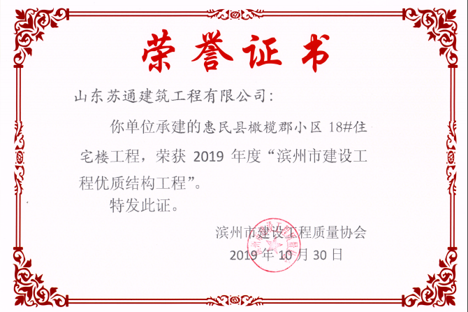 山東蘇通建筑工程有限公司,創(chuàng)建于2009年8月。目前擁有房屋建筑工程施工總承包壹級、市政公用工程施工總承包叁級、水利水電工程施工總承包叁級資質(zhì),同時還具有建筑裝修裝飾工程專業(yè)承包貳級、消防設施工程專業(yè)承包貳級、鋼結(jié)構(gòu)工程專業(yè)承包叁級、建筑機電安裝工程專業(yè)承包叁級等專業(yè)承包資質(zhì)。 公司總部坐落于山東省濱州市濱城區(qū)黃河十二路877號,現(xiàn)有辦公面積約2000平方米,機構(gòu)設黨支部工會辦公室、總經(jīng)理辦公室、綜合辦公室、工程管理部、經(jīng)營預算部、資產(chǎn)財務部、材料設備部、運行管理部、法律事務部等多個職能部門。公司管理體系已經(jīng)通過了GB/T 19001及GB/T 50430質(zhì)量管理體系、GB/T 24001環(huán)境管理體系(EMS)、GB/T 28001職業(yè)健康安全管理體系(OHSMS)等體系的認證。 公司承建完工了濱州市建大教師之家、建大清怡苑、香格里拉水岸綠城住宅小區(qū)、雙泰建大城、曲阜崇德公館住宅小區(qū)、北海新區(qū)御景藍灣住宅小區(qū)、沾化德榮國際華城住宅小區(qū)、惠民橄欖郡住宅小區(qū)等工程項目,目前在建工程項目有:濱州市頤高國際電子商務產(chǎn)業(yè)園住宅小區(qū)項目、濱州市東盛國際項目、高新區(qū)建大中央華府住宅小區(qū)項目、濱州市融匯新里程住宅小區(qū)項目、濱州市建大秦皇壹號住宅小區(qū)項目、濱州市森林花...